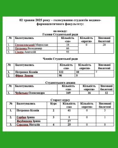 Впродовж 28 квітня по 02 травня 2025 року – пряме таємне голосування представницьких та виконавчих органів студентського самоврядування БДМУ.